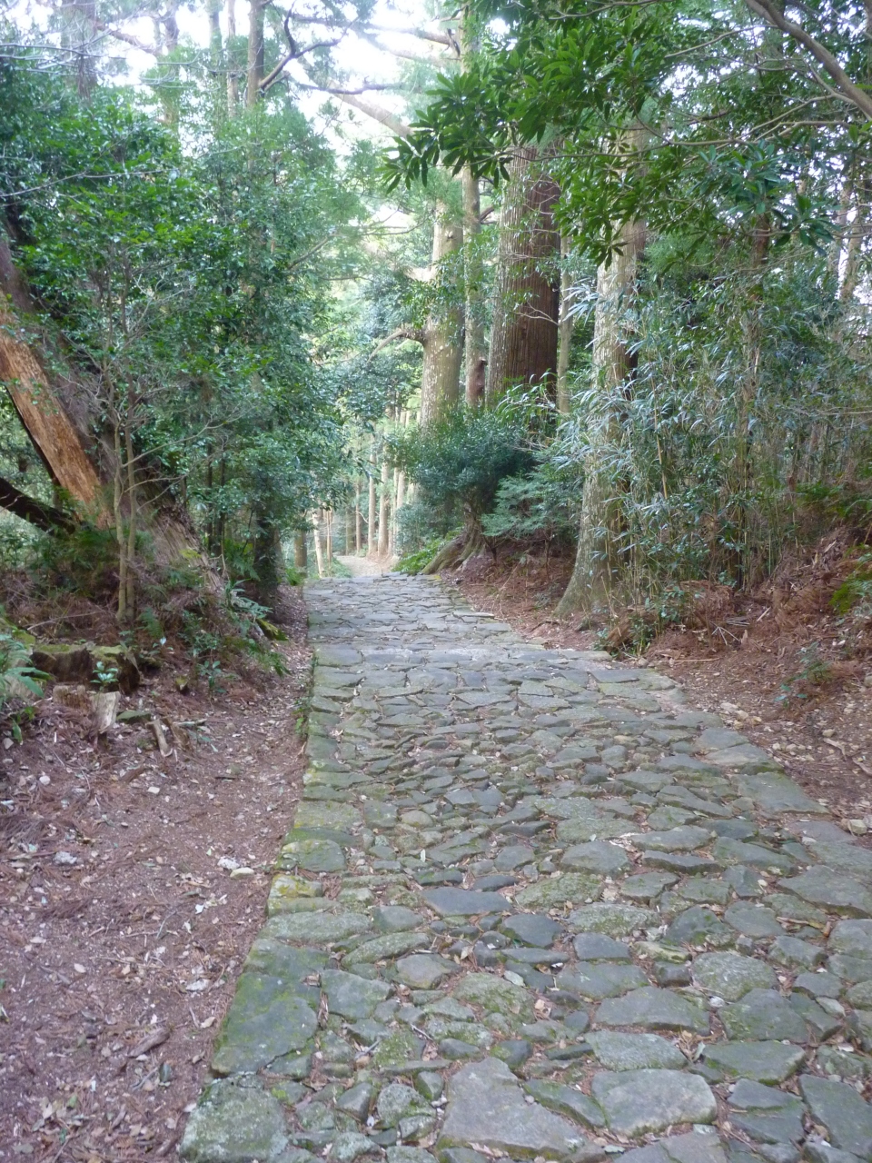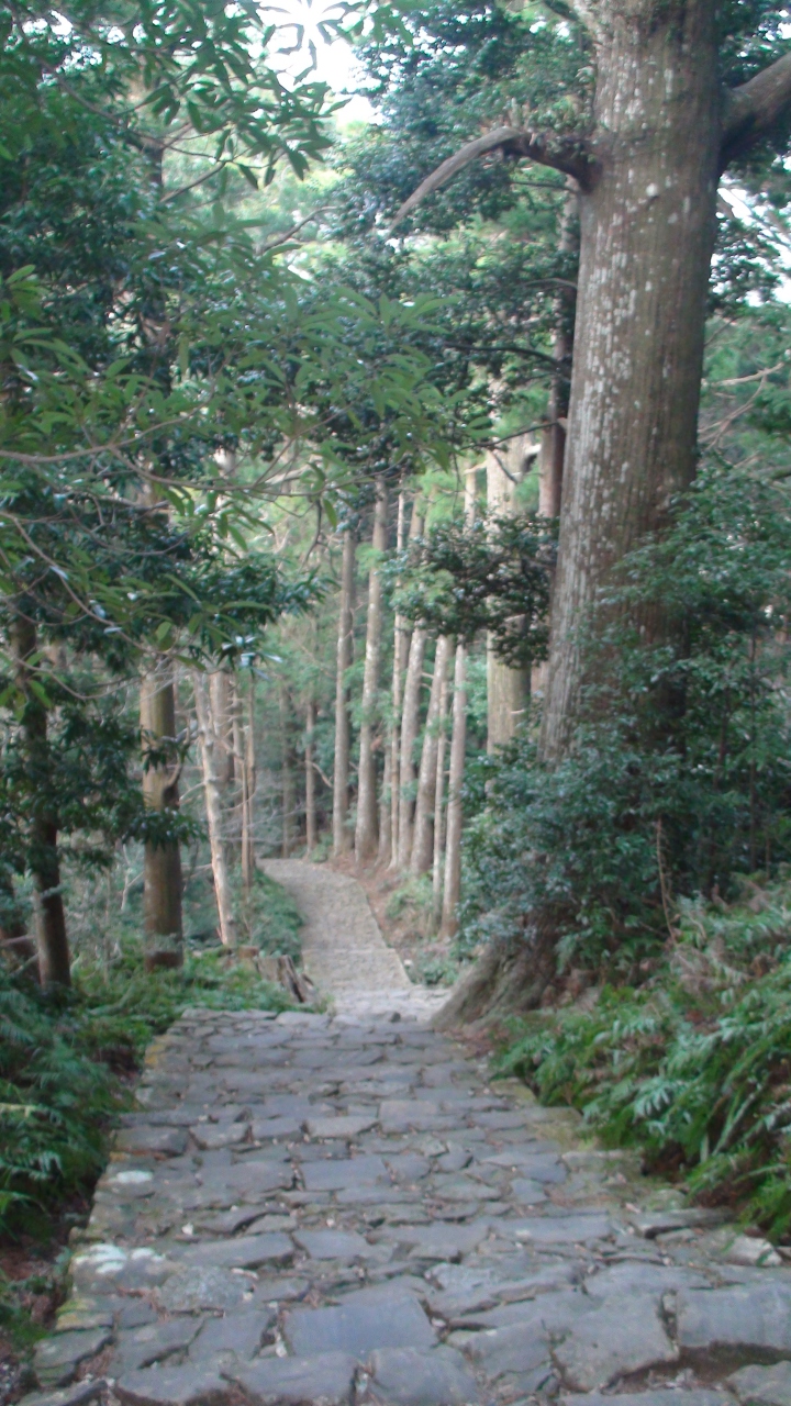 世界遺産になり、その古式ある道には多くの観光者がバスを連ねてその古道を歩くツアーに出くわした。時間が無かったので、熊野大権現へ繋がる古道を少し歩いてみた。さすが古びた石畳の街道が曲がりくねりながら延々と繋がっている。道幅も狭いところは1mも無いが、広いところではその倍は有る。その道はかなり勾配のきついところもあり、昔の人はあえぎあえぎ登っていったものと感じながら体感した。