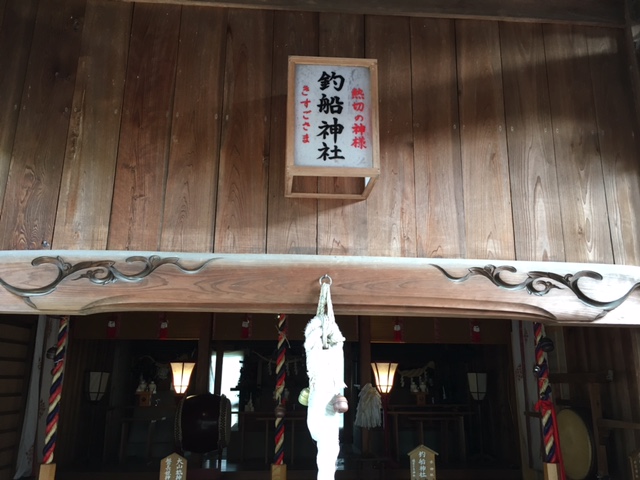 案内板に寄ると、「昔、御畳瀬浦の船が釣りをしているとキスゴの漁が多く、その中に御神体が上がり、釣船大明神とお祭りしたところたちまち御神威を発揮され、古来熱病退散 の霊験あらたかであり熱切りの神様と信仰せられています」。