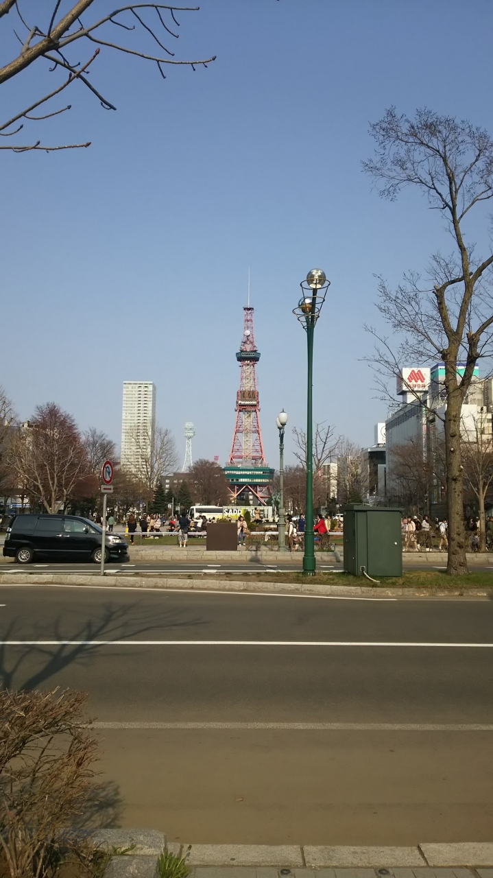 横に長い公園で、花が植わり、きれいです。また、食べ物の露天も出ています。公園の端に、札幌のシンボルともいえる、テレビ塔が立っています。