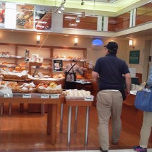店舗サイズはけっこう広くて、品ぞろえも豊富でした。扱っているパンの種類や味は本当に普通で、無難なスーパーのパン屋さん、という感じです。お店からちょっと離れたところにピーコック全体のイートインスペース的な場所があるので、そちらで食べることもできます。