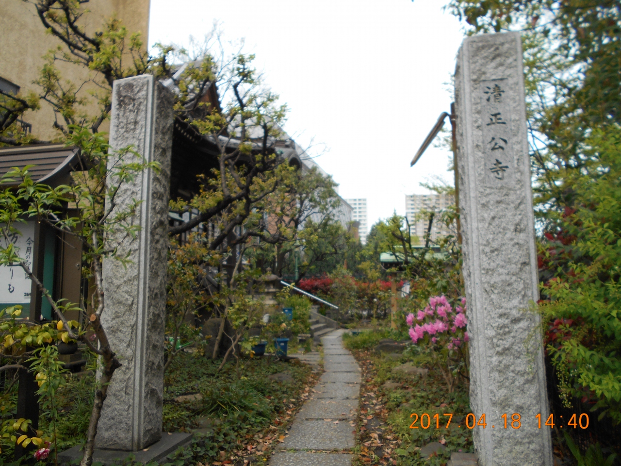 隈本本妙寺の別院で 文久元年(1861年)に隈本藩主細川斎護が隈本本妙寺に安置してある加藤清正公の分霊を当地にあった下屋敷に創建して祀ったものです。
