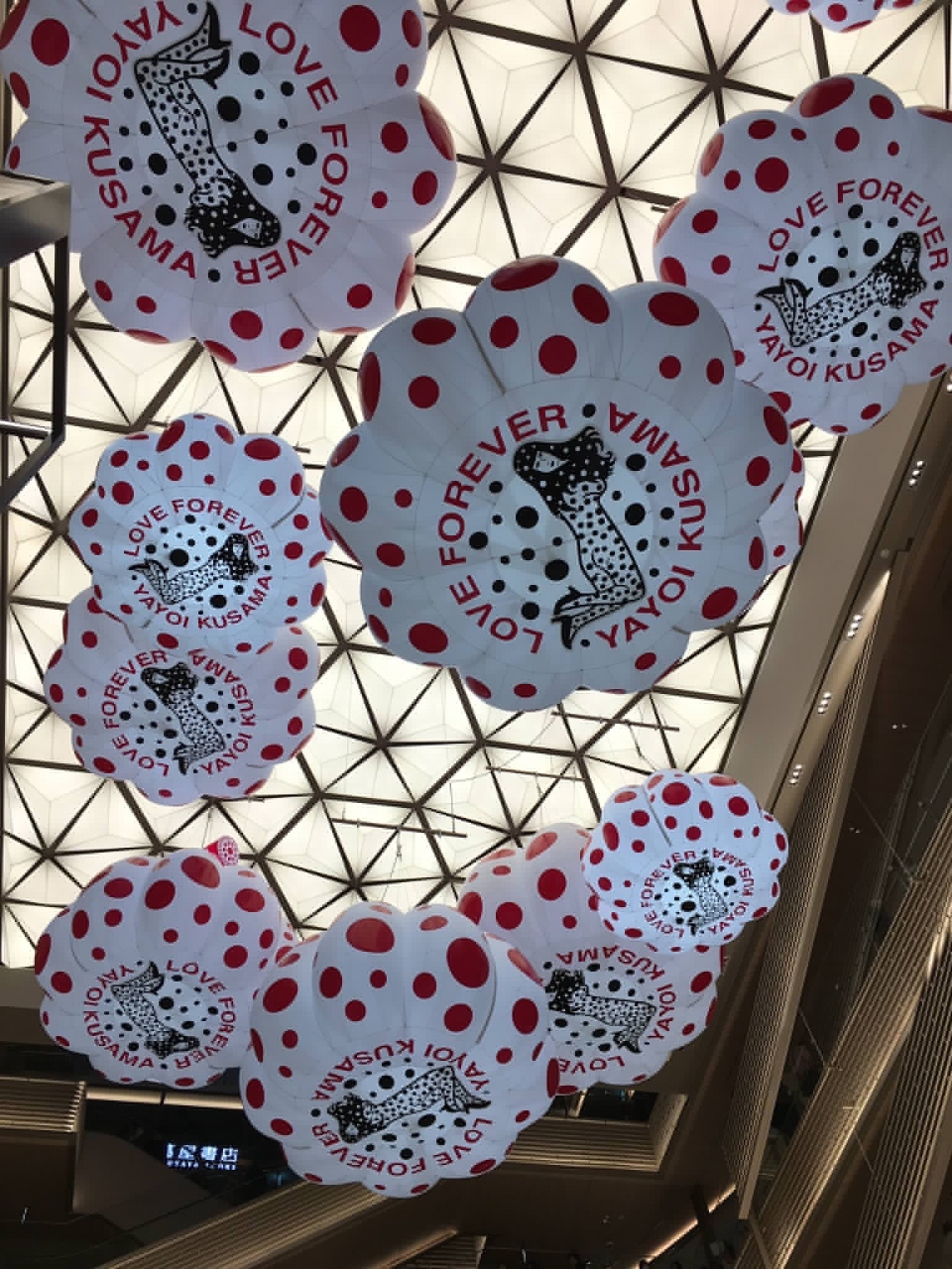 旧松坂屋の再開発で出来た銀座シックス。物販も、カフェも、食事も色々揃っていて便利なのですが、いまはとにかく混雑しています。巨匠、草間彌生先生のデザインによる風船が所狭しと飾ってあるのはオープンしたてのいまだけでしょう。駐車場などもあるにはありますが、とにかく混雑しているので、公共交通機関での来場をおすすめ。