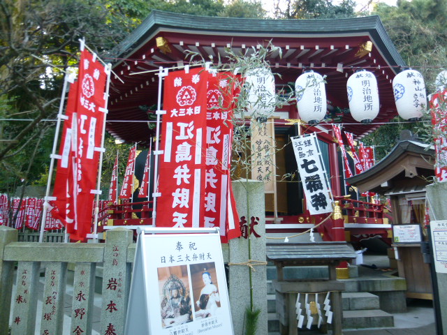 現在の江の島での参拝は主に辺津宮となっていますが江戸時代には大変賑わっていたようです。