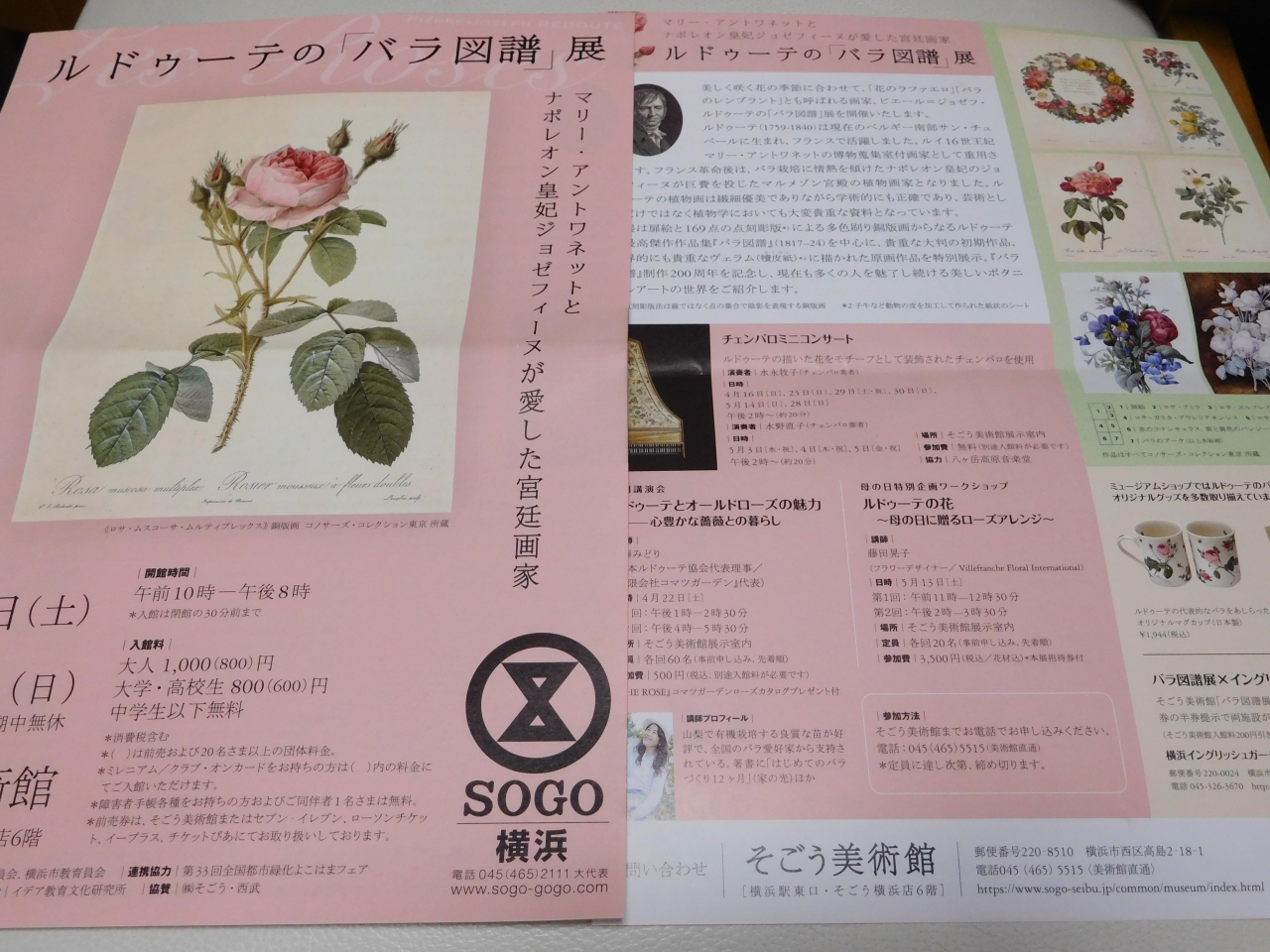 横浜駅東口にある「そごう横浜店」の6階にあります。訪れた時は、ルドゥーテの「バラの図譜」展が開催されていました。もうすぐバラの時期になるので、季節感があって良かったです。夜の8時まで開館しているので、デパートならではの便利さと、買い物ついでに気軽に立ち寄れる立地が良いと思いました。館内は、思ったよりも広く感じました。