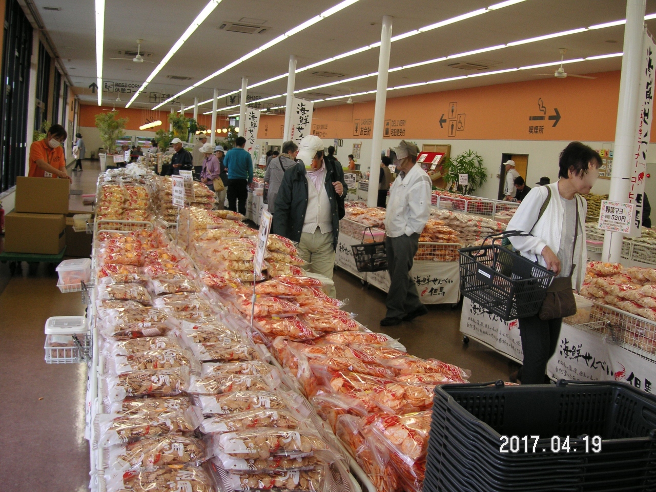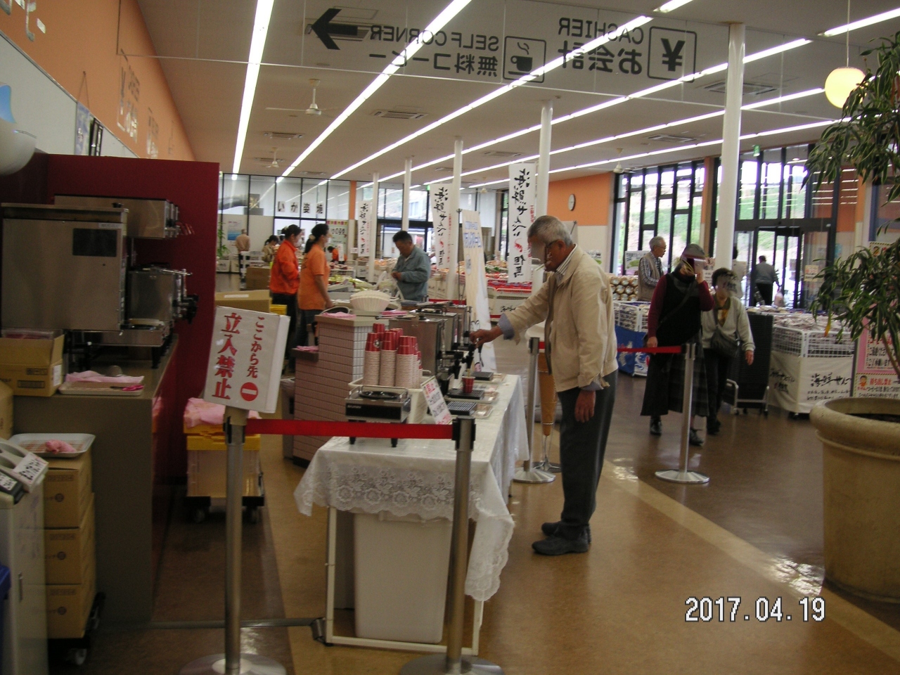 5か月ぶりに会社の社長と同行、但馬地域の営業に出掛け帰りにトイレ休憩と無料のコーヒーいただきに利用。観光バスでのツアーのお客が立ち寄り店内は賑わっていました。コーヒーの後、社長が土産に海鮮せんべいの徳用袋を買ってました。今日はせんべい製造の工場も動いており、よっくりと満喫できました