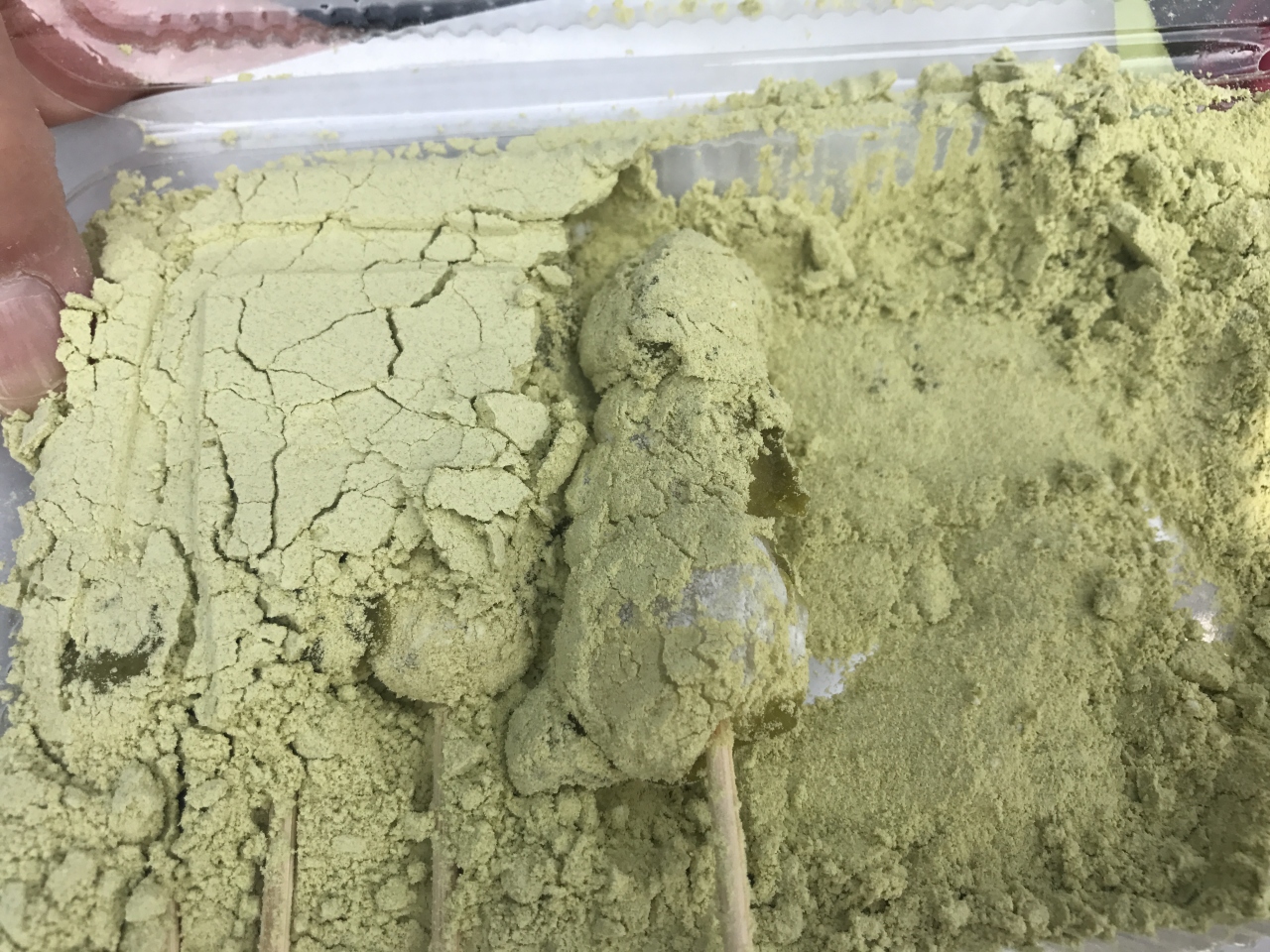 珍しい黄緑色のきな粉は青大豆と抹茶だそうです。添加物は入ってないので、消費期限は翌日までですが、早めに食べる方がもちろん、おいしいです。