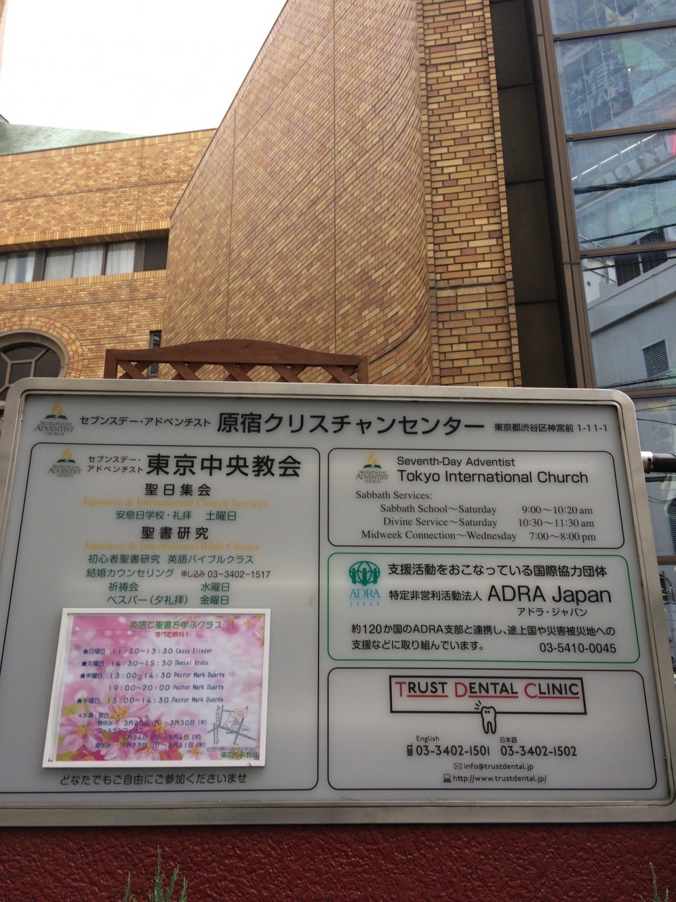 原宿クリスチャンセンターに東京中央教会があります。