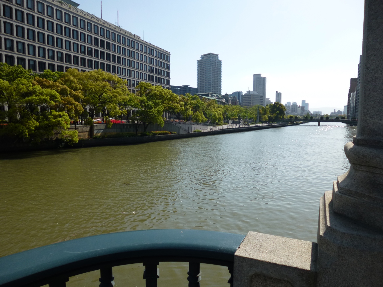 4月中旬という事もあり、沿道の緑は色濃く鮮やかでした。一方で土佐堀川も緑色をしていましたが、こちらは澱んだ「緑色」という印象を受けました。