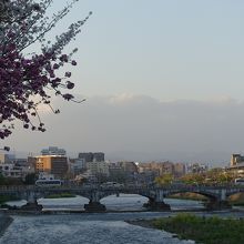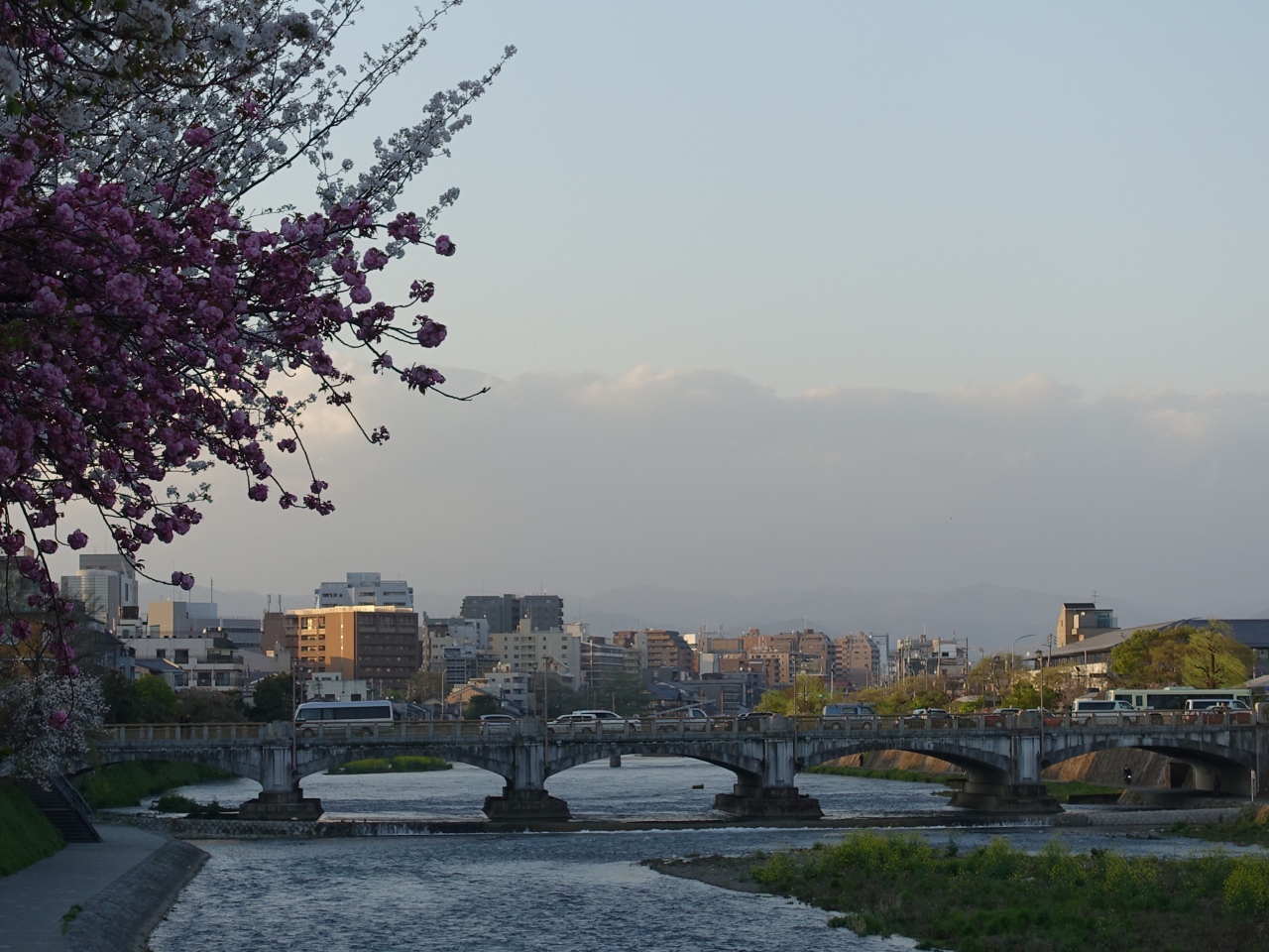 七条駅を降りるとすぐに、鴨川と七条大橋が目に入りますが、4月中旬という事もあり、堤防沿いには桜の花も見られ、とても美しい光景でした。四条や三条あたりと比べると人が少ないのも良いと思います。