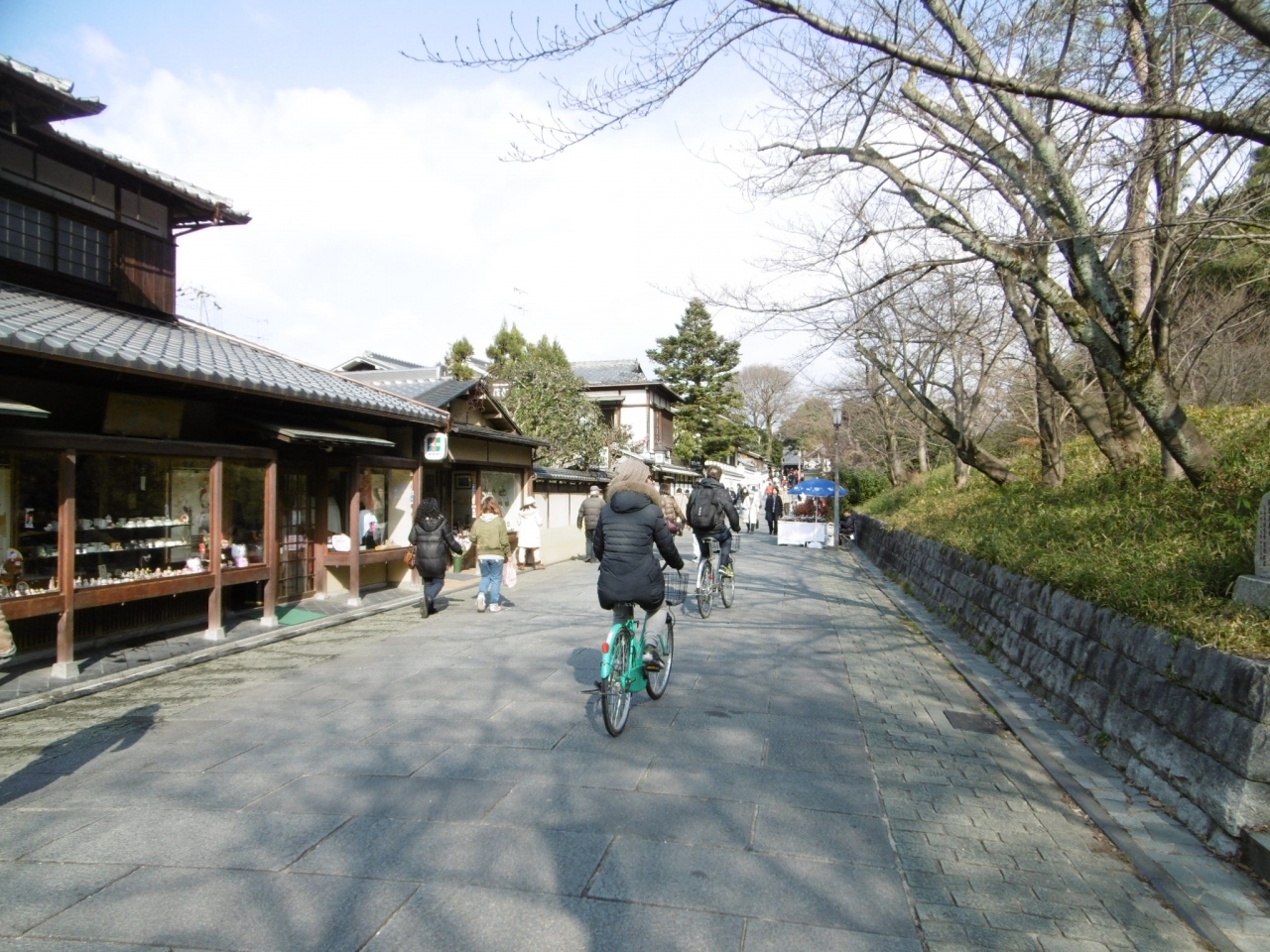 「ねねの道」は高台寺の西にある道。北政所ねねがこの地で余生を送ったことにちなみ名付けられた。散策やレンタサイクル等、観光客が多った。店がいっぱいあるため食事するのも、ちょいと休憩するのも困らないところである。