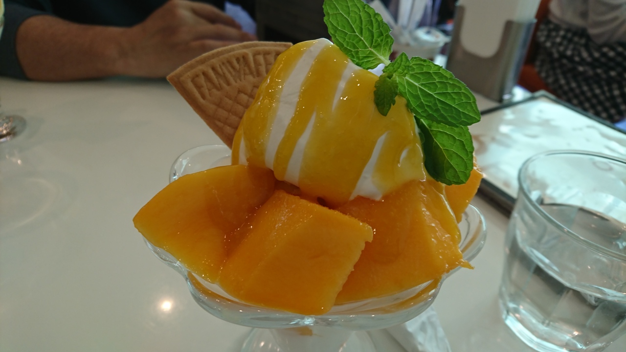 4月の終わりだったので5月からとなっていたマンゴーパフェが、メニューよりちょっと高い1500円でしたがあるという事だったので、迷わず食べてしまいました。