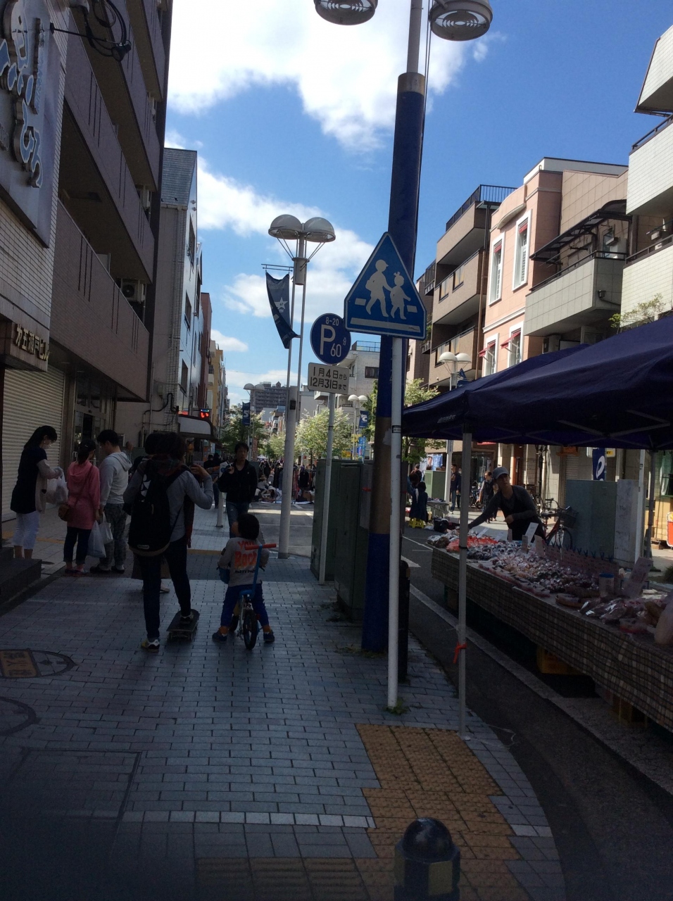 相鉄線天王町駅前を通り、帷子川の鯉を橋の上から!ながめて徒歩3分ほどでシルクロード天王町商店街、飲食店や家具屋さん洋服屋さんとお店が並んでいます。その商店街でフリーマーケットがありますよ!アンティーク市もあります。お祭りの時も商店街にずっと屋台が出ます