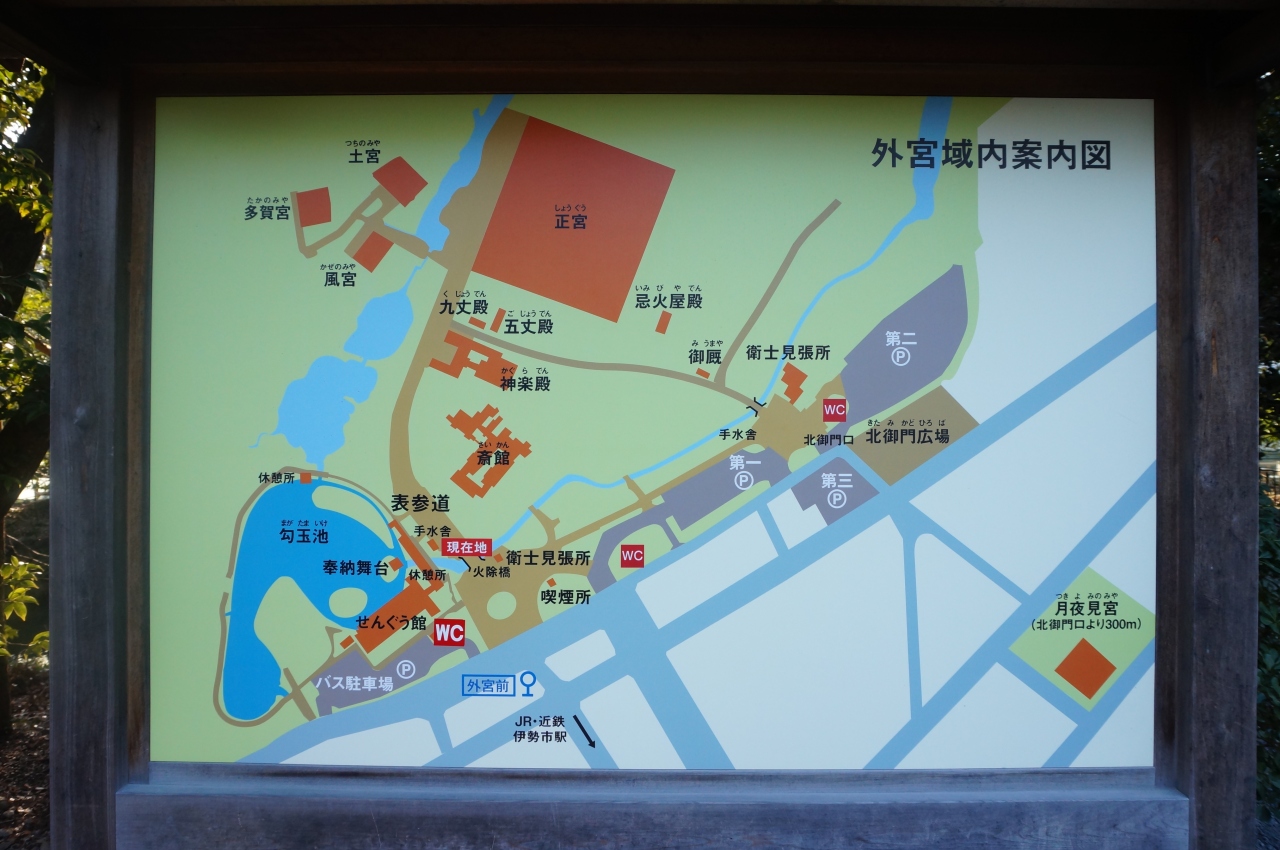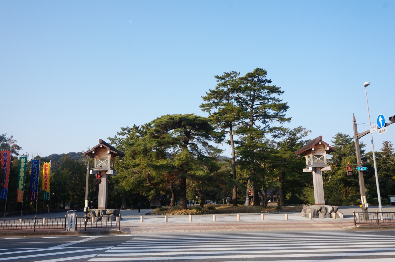伊勢市駅前の道を5分ほど直進すると着きます。