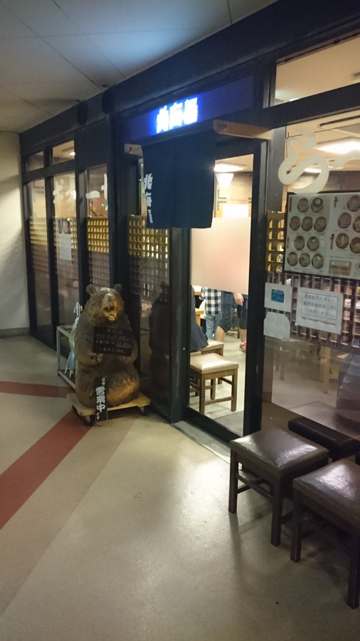 千里中央駅直結の商業施設セルシーにあるお店です。入り口に大きな熊の木彫り人形があり、いかにも北海道という感じがします。ラーメン春なので味噌や醤油などがあります。味噌ラーメンを選びました。ちぢれ麺なのでスープによく絡みます。アクセスもよく、本格的なラーメンを楽しむにはとても便利です。