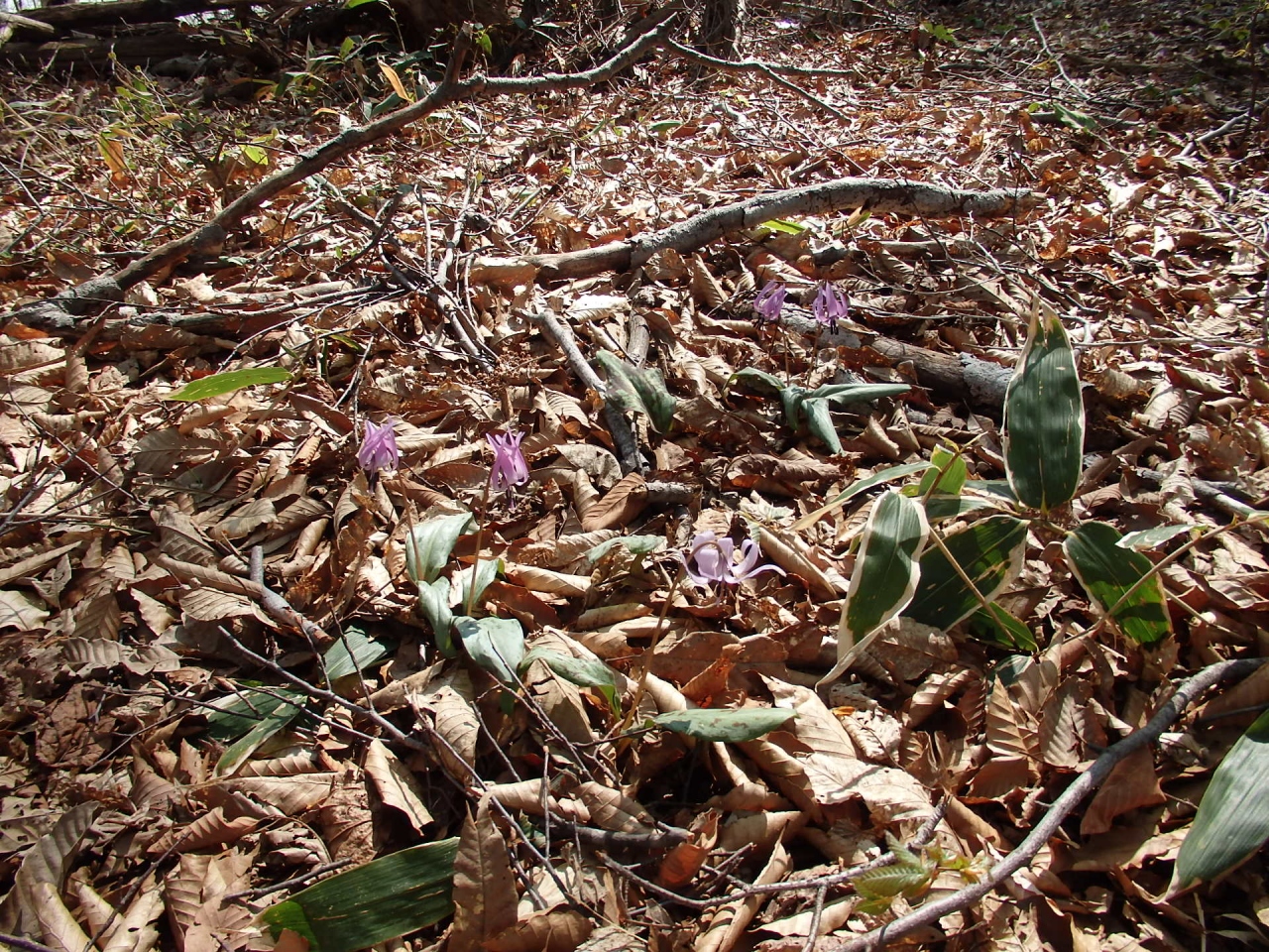 河内神社駐車場と三峰山(後閑峰)往復で登りました。河内神社ではお祭りの最中で飛び入り参加し、撒かれていたお餅を1つ頂ました。想像以上に多くの野花に出会えました。カタクリ、種々のスミレ、ニシキゴロモ、ジュウニヒトエ、ハルリンドウ、ウグイスカグラ、ヤマツツジ、ミツバツツジ、ヤマザクラ、カキドウシ、ヒトリシズカ、エンレイソウ、シロバナエンレイソウ、タムシバ等20種以上あり、思わぬプレゼントを貰った気分でした。山頂からの展望もあり、北にはっきりと谷川岳、東に武尊山、玉原高原が見えました。コースも歩き易い山道でした。満足できる山行きでした