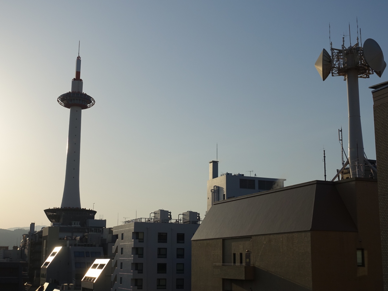 宿泊していた京都駅至近のホテルに小さなテラスがあり、そこから京都タワーの姿を一望する事が出来ました。