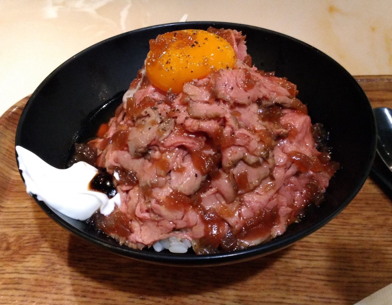 お約束の卵の黄身とサワークリームがトッピングされています。