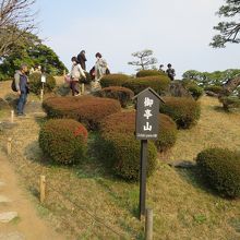 浜離宮恩賜庭園の横堀と潮入の池と庚申堂鴨場のほぼ真ん中あたりにある小高い山です。御亭山と書いて「おちんやま」と読みます。