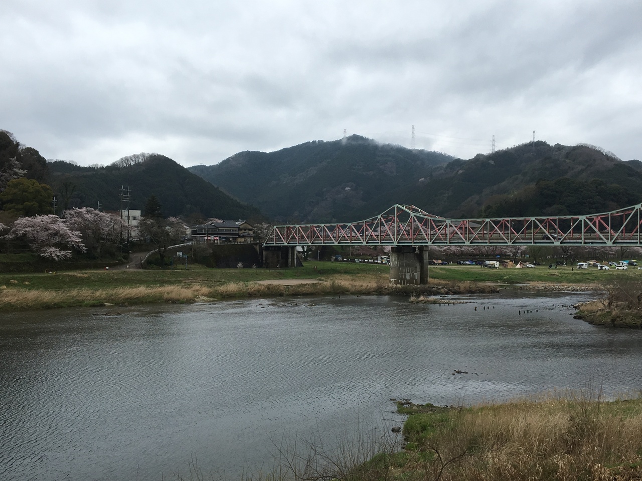 木津川らしい風景として、笠置大橋周辺の景観がオススメです。後醍醐天皇の在所跡や磨崖仏のある笠置山をバックに、木津川にかかる橋は、少し昭和チックな橋の景観です。橋の下の河川敷はキャンプ場で賑わっていました。大きな岩で、岩登りもできるとのことでした。