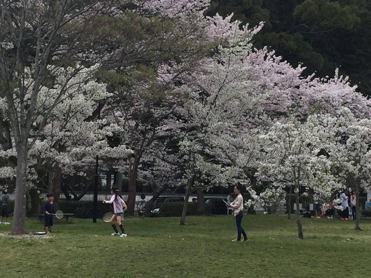 錦帯橋を渡ったところにあります。公園の桜が満開で、とてもきれいでした。公園の芝生の広場では、地元の親子連れの方々が遊んでいました。錦帯橋周辺と比べると、かなり人が少ないので、ベンチに座って一休みすることができました。