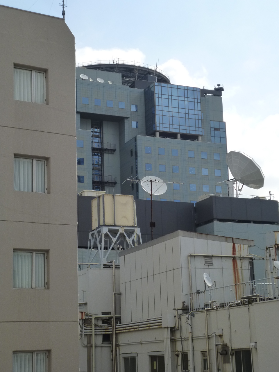 宿泊した赤坂のホテルの客室から、TBSの「ビッグハット」が間近に見えました。
