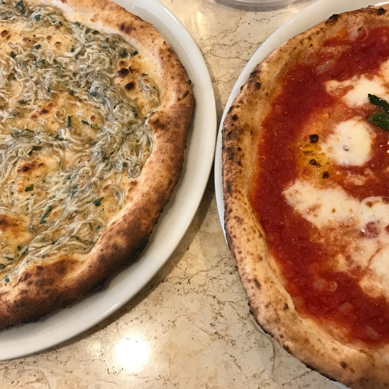 食券スタイルのピザ屋さんです。カウンター席で待てば奥の窯で焼かれたピザが登場します。2人で行ってシェアしいました。薄めの生地がとてもお気に入り。1種はマルゲリータ、もう1種はしらすにしましたが両方めちゃウマ!