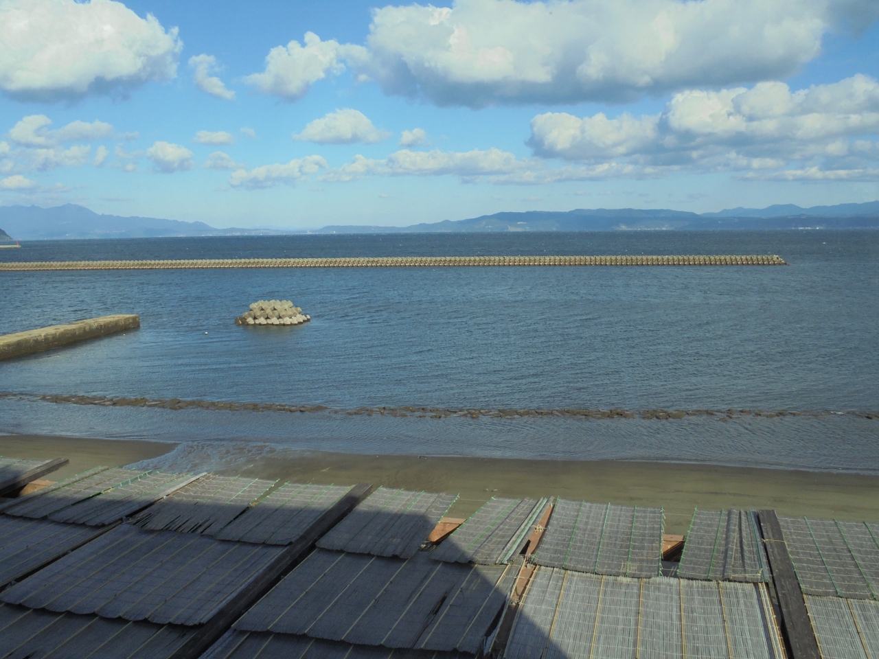 訪れたのは12月の北風が強い日。浴衣1枚で海岸に出るのは勇気が要りましたが、寒さより強風で裾が煽られるのが気になります。