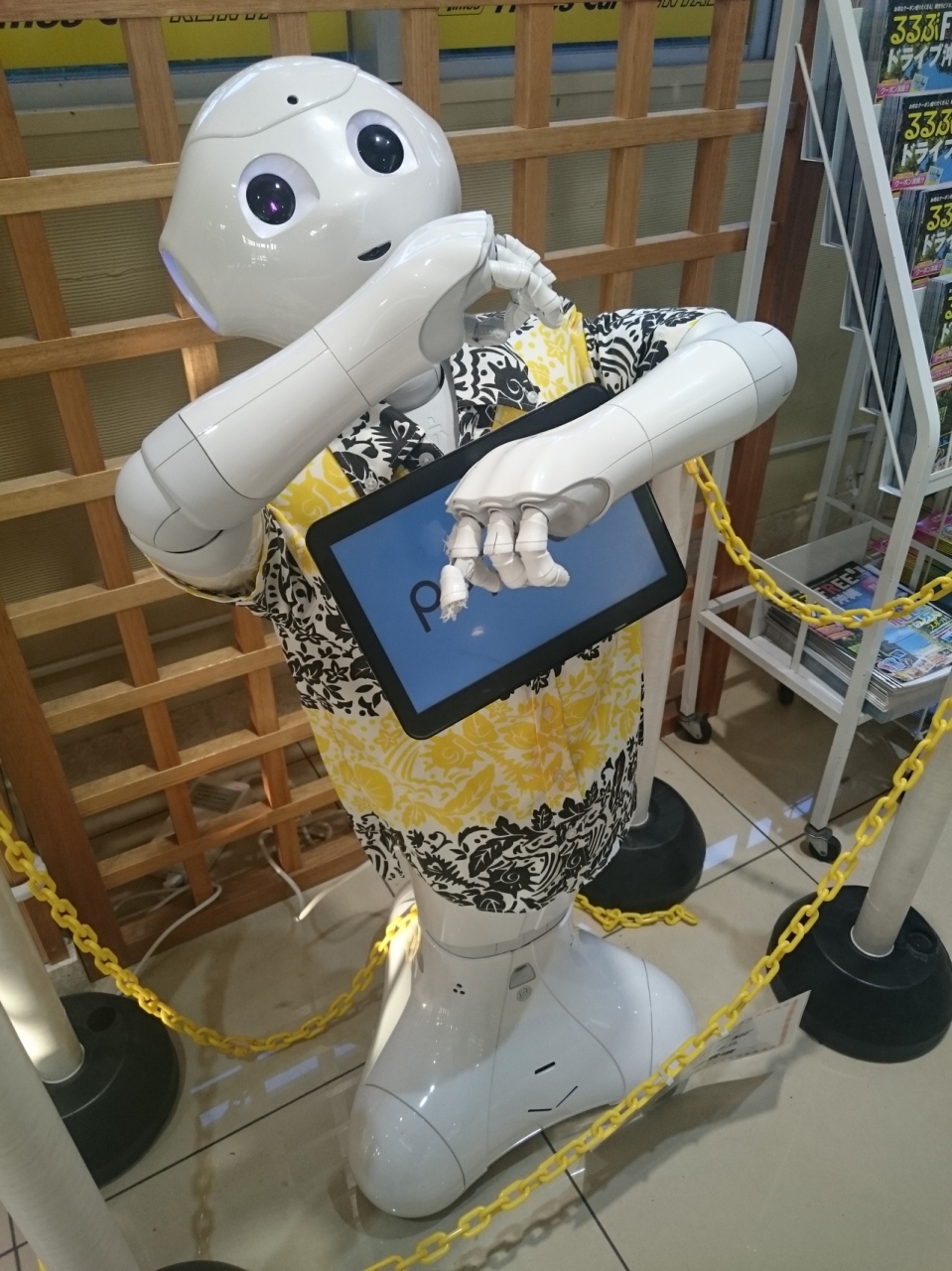 ペッパー君が接客してくれます。うちの子はあまり興味がなかったようですが、小さい子供を連れている時には時間が潰せてよいと思います。当たり前体操とかやってくれました。接客も特に問題ないと思います。