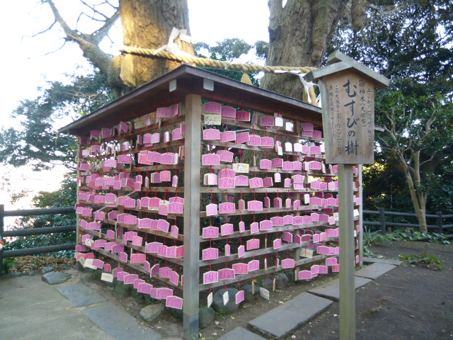 そして辺津宮で参拝し次の中津宮への路沿いにあります。絵馬が沢山掛かっているのが見えますがこれが、結びの樹です。