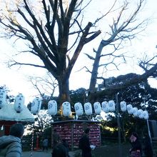 幹が二つで根が一つになったこの樹は江島神社の辺津宮のご神木とされ、二つが一つになることから良縁を願う人々にご信仰があります。