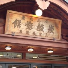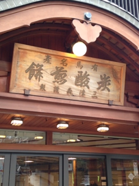 炭酸せんべいのお店で支店が何件がありますが、ここが本店で木の看板や店構えが老舗の貫録です。店内で実演もおこなっており、作りたてのせんべいの試食をさせてもらえました。せんべいは軽い口当たりでいくらでも食べれます。