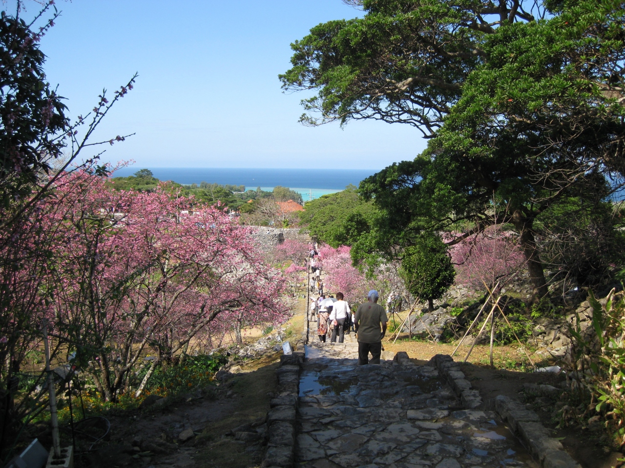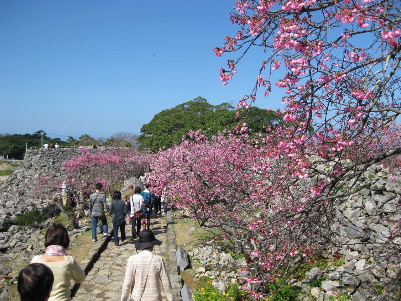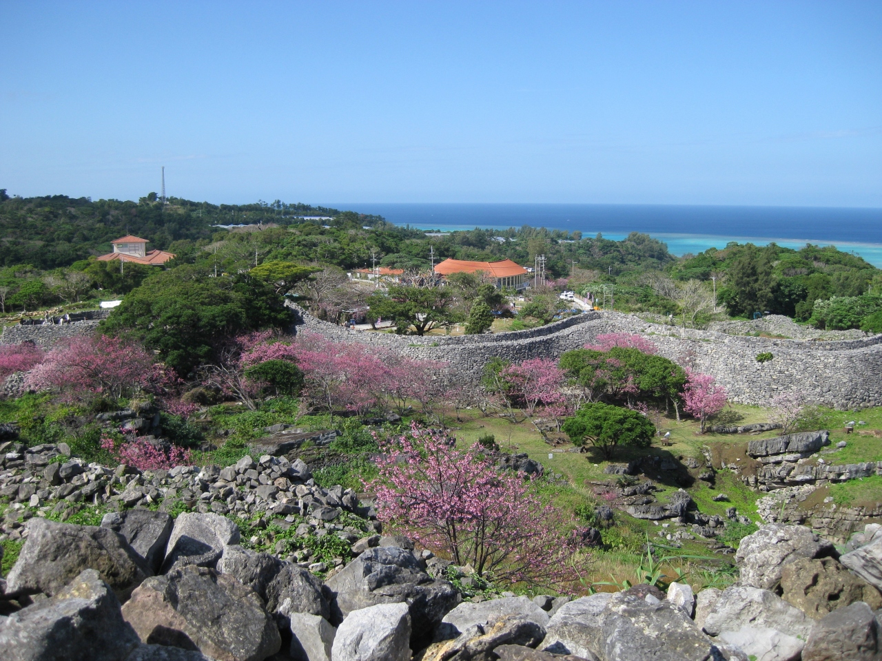 沖縄本島北部、本部半島にある世界遺産にも登録されている歴史的なグスク(城)。那覇空港から高速道を使って1時間半の距離です。13世紀琉球王国成立以前に築城された城壁と谷に囲まれた堅牢な北山王のグスクです。1月末頃からグスクを囲む桜が咲き始め大変美しい姿になります、海と空と白い城壁と桜のコントラストは最高です。春夏の沖縄も良いですが1月後半の沖縄も気温が20度位でいい環境です。駐車場も広くなり、また観光センターもありお土産、食事と便利です。