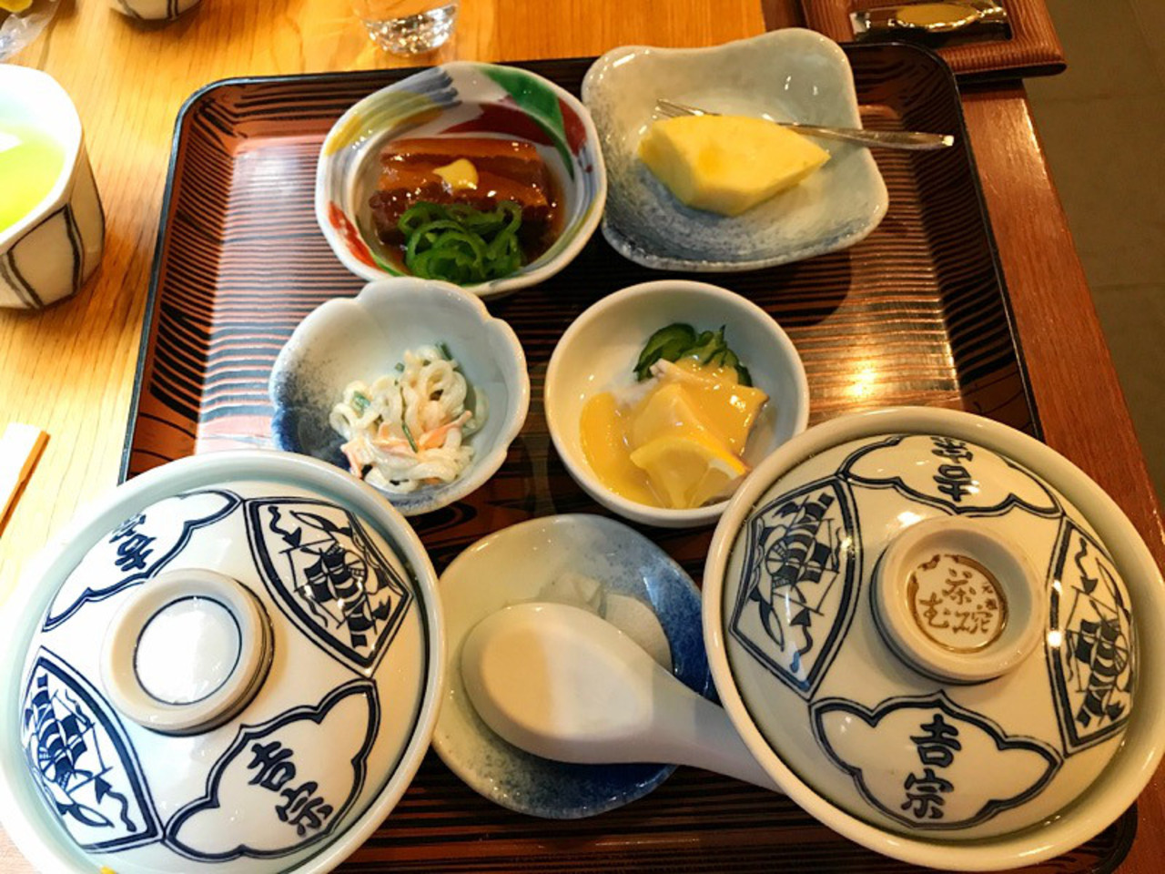 茶碗蒸しには穴子が入っていました。珍しい。蒸寿司は焼穴子のそぼろ、たらのおぼろが上に敷き詰められていました。酢飯の中には細くカットされたささがきゴボウも入ってました。