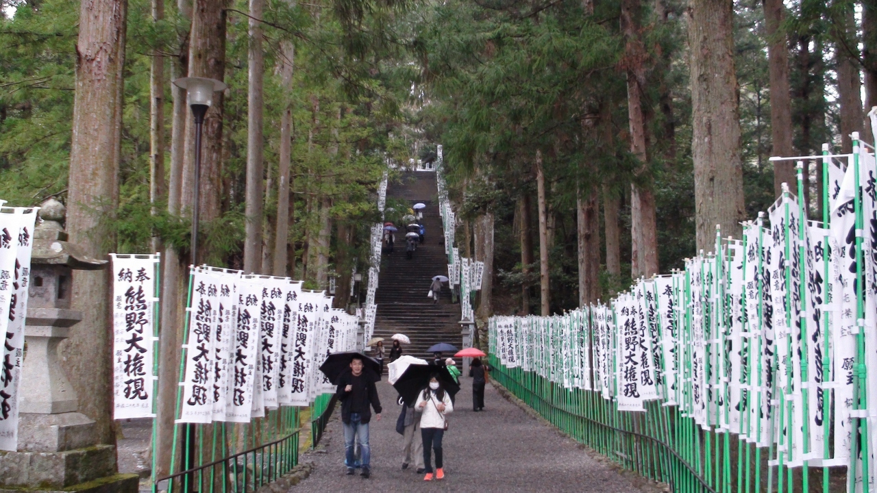 熊野速玉大社より更に山奥へと熊野川をさかのぼって行くと熊野本宮大社に繋がる。ここの駐車場も無料で、参拝口も近い。鳥居をくぐりひたすら階段を上ってゆくと檜皮葺きの社殿が凛と佇む前に出る。その横には、サッカーで有名になった八咫カラスの祭神がお祀りしてある。門を潜り社殿に入ると荘厳な社が四殿が鎮座する。一つずつ手を合わせ参拝を済ませ、熊野三山のお参りを済ませた。