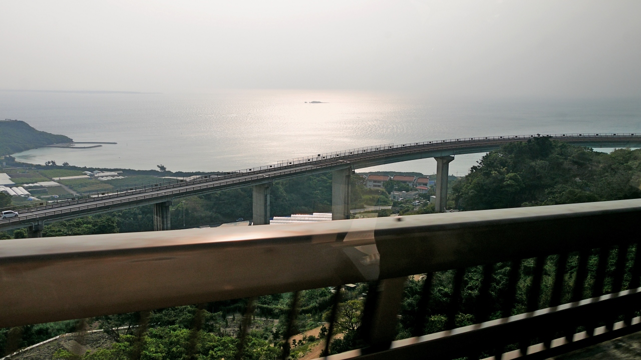 県道86号線,ニライカナイ橋を一番よく見えるのは,登りきった橋の上からがよい.
