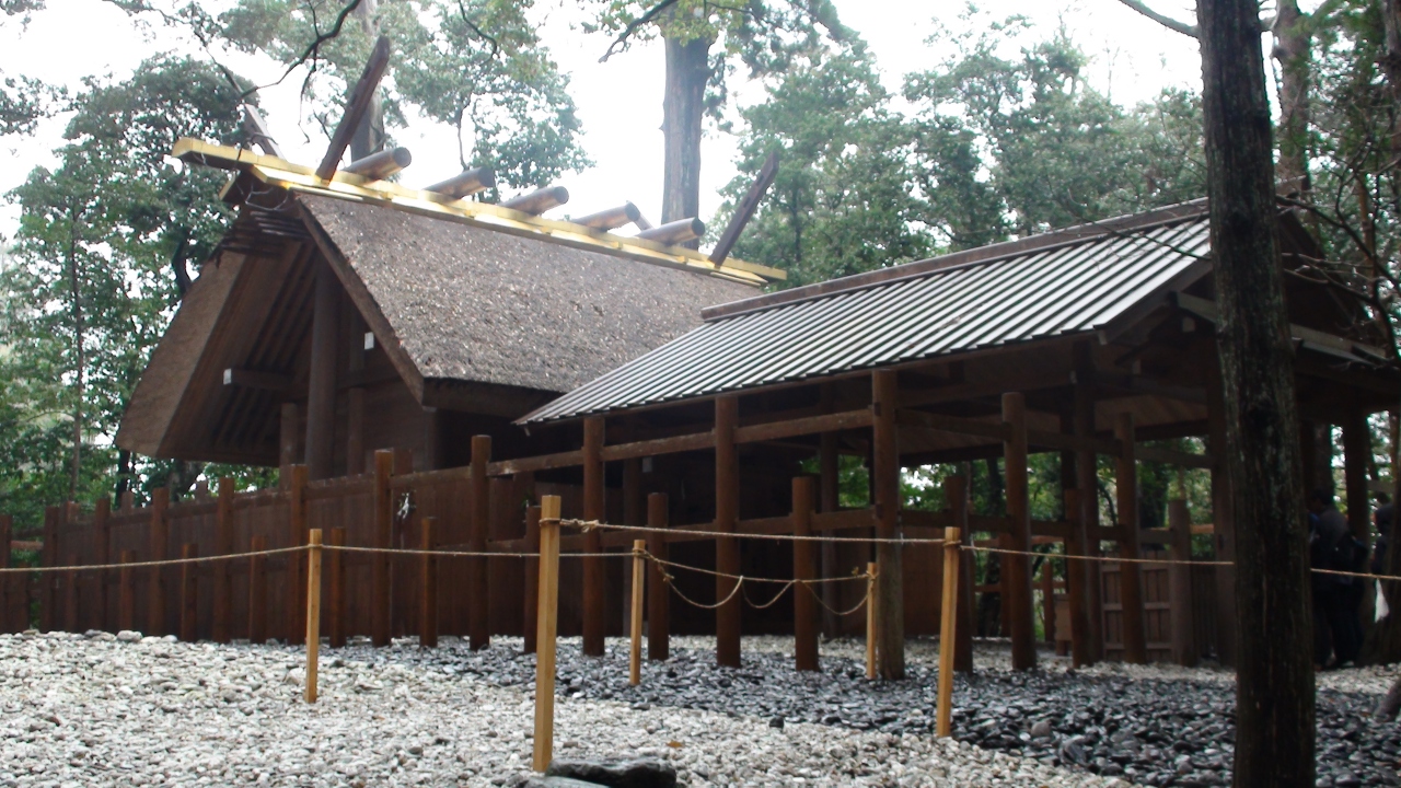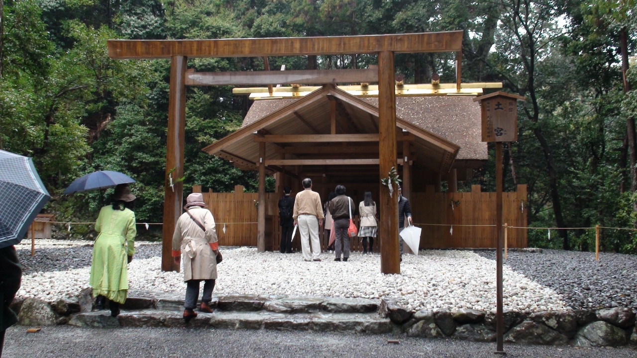 日本人ならば一度は訪ねてみたいスポットであり、家族で車を使い参拝することとなった。22号線を進み、伊勢市役所を少し行ったところに大きな駐車場が有る。駐車場からは正面から参拝するのではなく横道からのお参りであった。想像以上の広さにびっくりしながら雨の中を玉砂利を踏みながらの参拝となる。