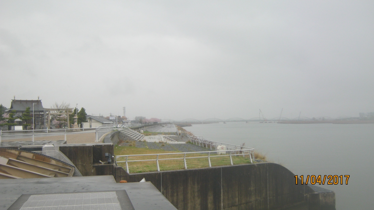 揖斐川を渡る渡し場です。かつては旧東海道がこの桑名を通っています。そして揖斐川の大河を渡ります。その渡し場があるのは住吉神社前からです。それを七里の渡跡といわれています。今は碑が残っています。住吉神社にもその渡し場の様子がわかります。