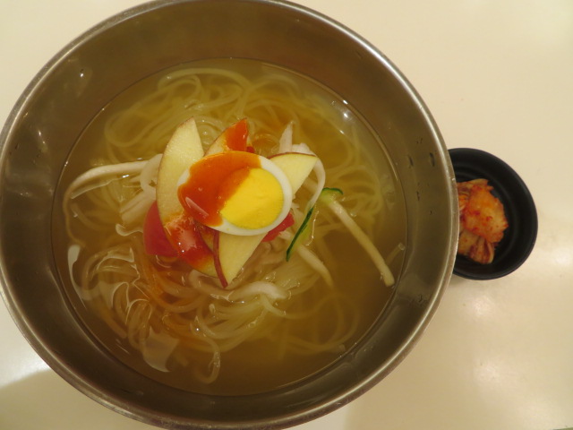 季節も暖かくなったので冷麺(780円)を食べました、しっかりした麺と酢が効いたスープで美味しく食べることが出来ました、しっかり少ないけれどキムチも付いていました。