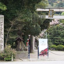 多くの人は、八幡駅の改札を出て右方向へ行き、ケーブルカーを利用しますが、お勧めは本来の参道である左手の第一鳥居をくぐって階段をのぼっていく道。