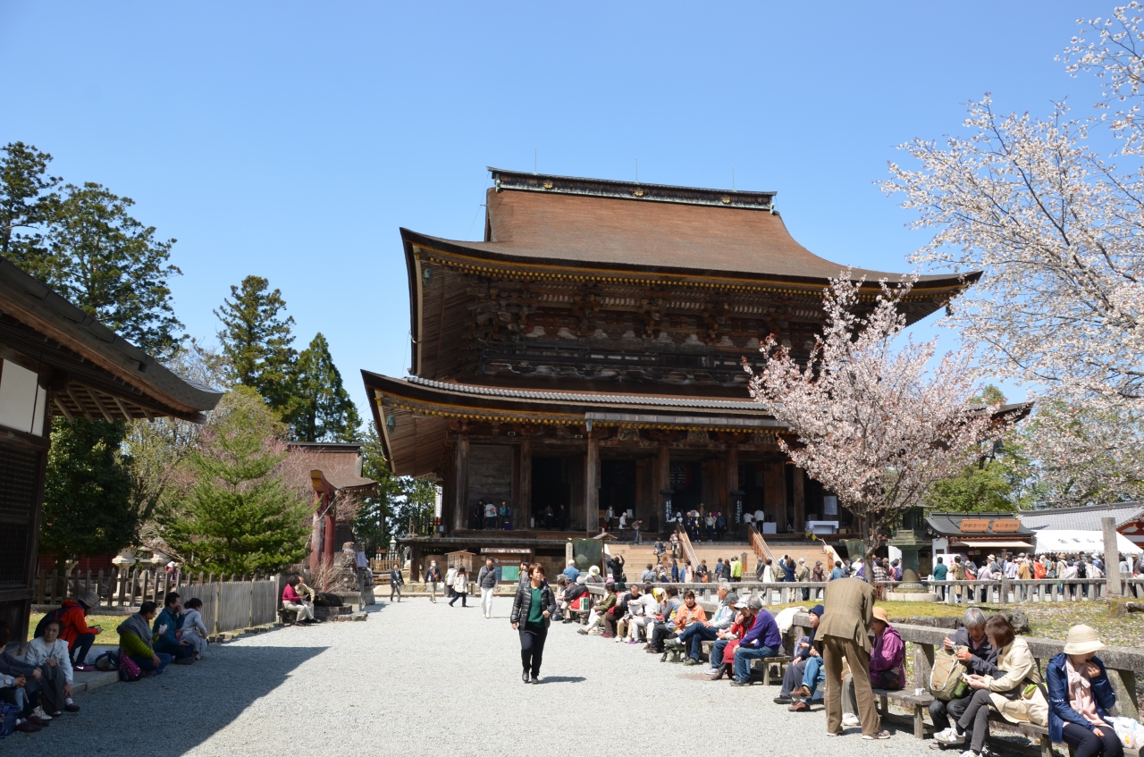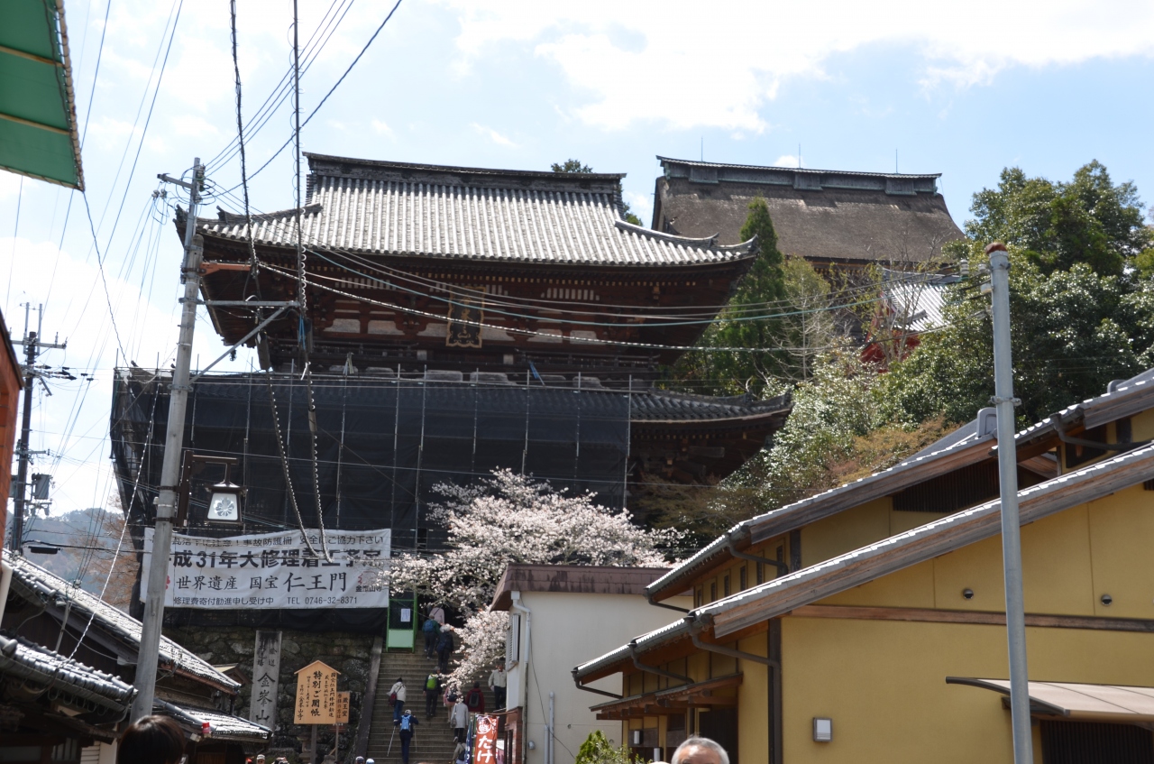 黒門を抜け銅の鳥居をくぐり登り坂を少し進むと目の前に仁王門が現れ階段を上ると蔵王堂である。この建物は奈良の東大寺大仏殿に次ぐ大きさといわれ、その大きさと立派さにしばし目を奪われるが、拝観料も結構高く外から手を合わせることで参拝を済ませた。