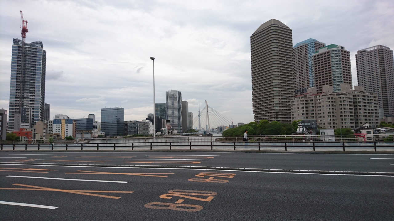 月島にもんじゃを食べにいった際、ちょっと腹ごなしに散歩している際に渡りました。