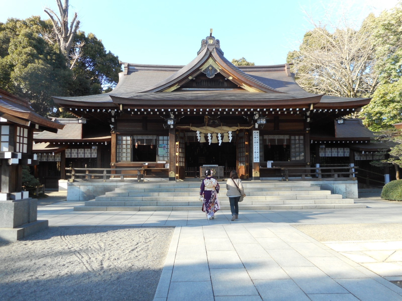 水前寺公園内にある神社です。入園するとまず左手に社務所があります。そのまま左に進むと長寿の水という湧水があり、その先が本殿になっています。私が行った3月初旬は短大の卒業式があったようで、着物姿の女性がたくさんお参りに来ていました。御祭神は細川家歴代の藩主という、熊本に根差した神社です。