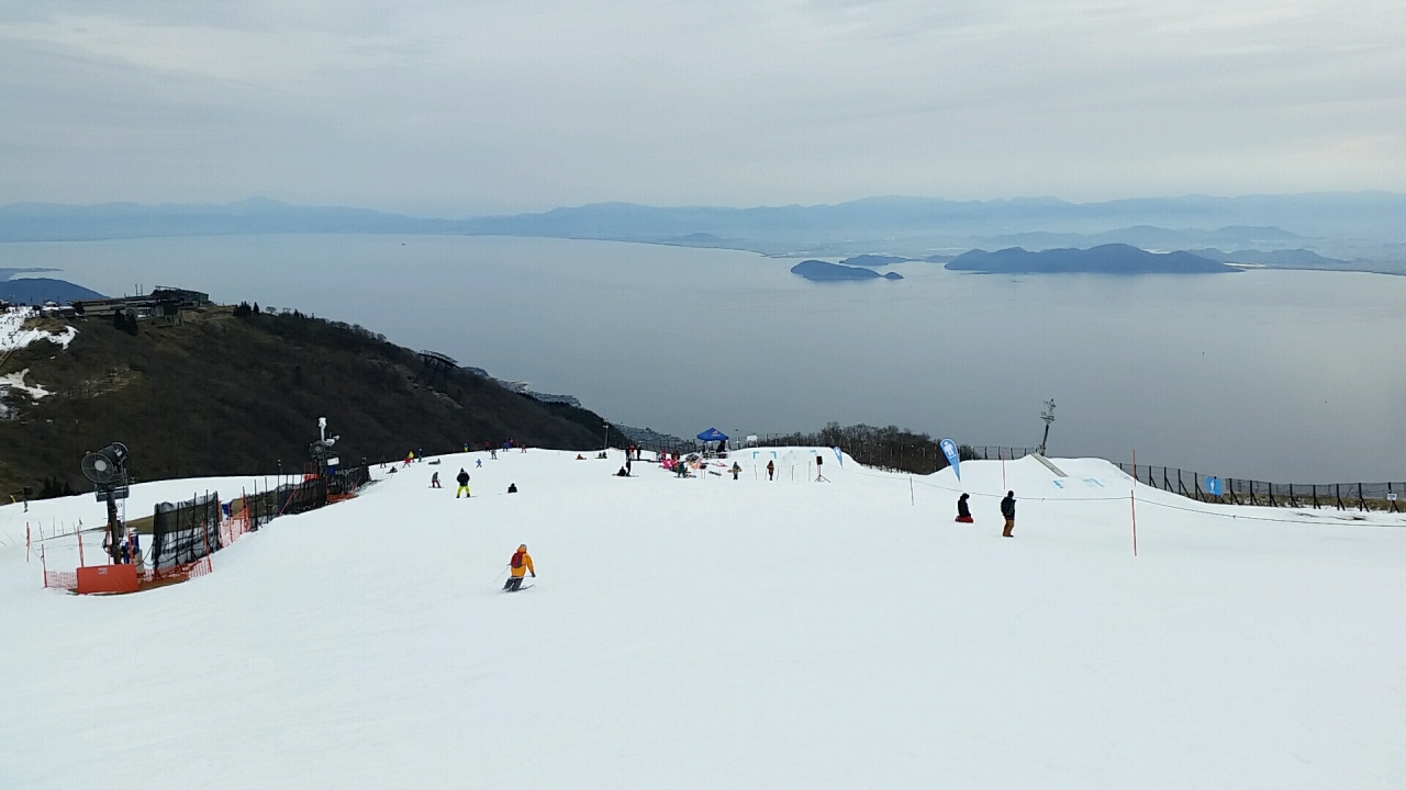 大阪からクルマで1時間半。アクセスの良さはピカイチです。寒さがそれほど厳しくなければノーマルタイヤで全然行けます(念のためチェーンは必ず持参しましょう)。ただしロープウェイ、リフト、レンタルはすべてお高いです。お金があり、気軽に行きたい、コース数にこだわらないという人にはおススメのスキー場です。天候がいい時には、山頂から見える琵琶湖の景色は最高です。