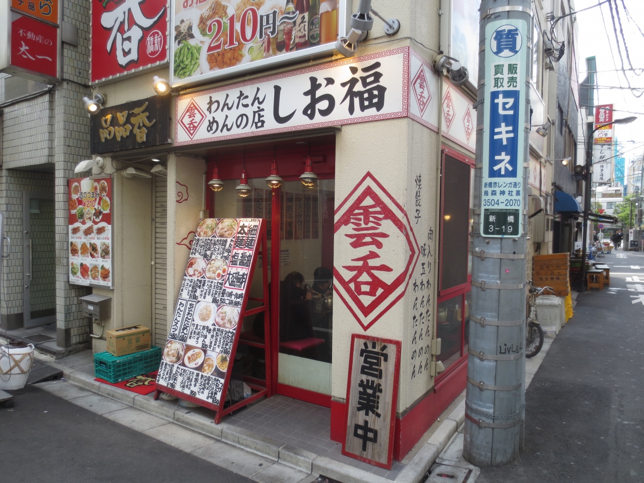 新橋駅から少し行った飲み屋街的な場所にあります。外観の色合いと雲吞というフレーズから、一瞬「広州市場」かと思ってしまいましたが、違いました。でも雲吞が売りのよう。で、入店。スープは塩、醤油とありましたが、店名にしおと入っているので、塩にしました。雲吞はぶりぶり感があって、美味しかったです。これ、手作りらしいです。なるほどね。スープはあっさり感よりも風味やコクが感じられて、塩もなかなかです。白菜が入っていました。