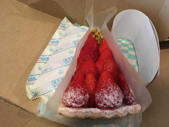 グランフロント大阪南館2階に入っているキルフェボンは常に行列が出来ていて、人気が衰える事がなさそうです。店内で待つ事なく食事をするには朝一で行くしかなさそうです。並ぶのが嫌なので、持ち帰り。季節限定のいちごタルトは売り切れ。別のいちごのタルトを購入しましたが、至ってごく普通のタルトでした。