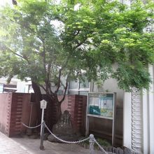 みゆき通り沿いの泰明小学校の玄関脇にあります。今まで何度か通っていましたが、全然気が付いず、今回たまたま気が付いた次第です。意識してよく見てみるとなかなか立派な木でした。一見すると記念樹のようですが、立て看板が出ていたので。