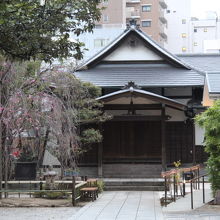 光明寺の境内の枝垂桜はまだ咲き始めでした。