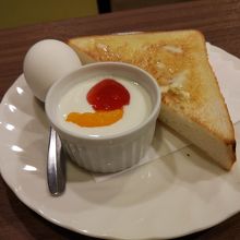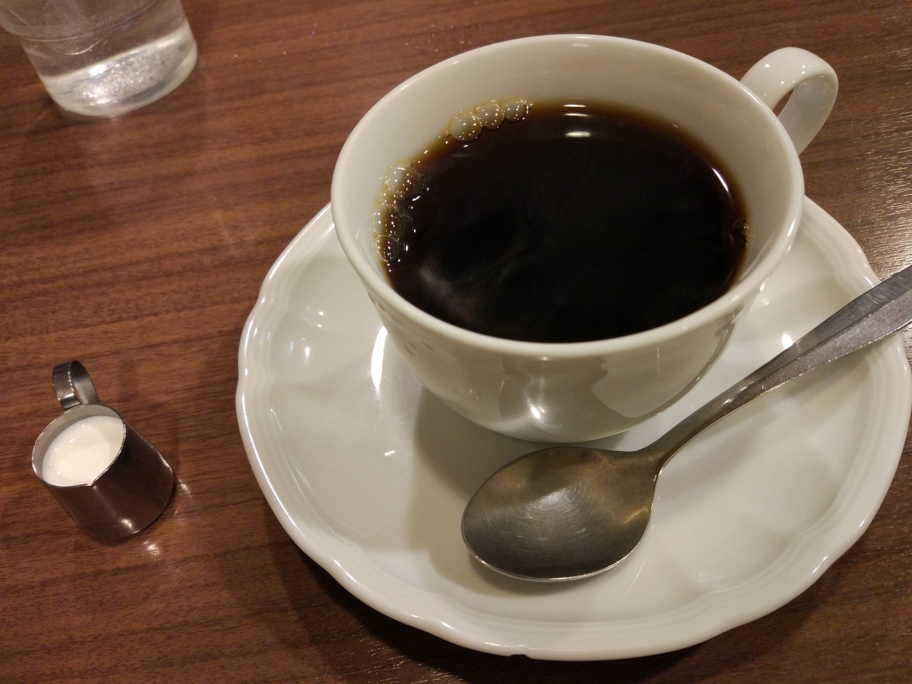 名古屋めし食べ歩き。朝7時半ごろに訪問。5割ほど席が埋まってます。喫煙席と禁煙席がいい感じで離れています。ブレンドコーヒー(450円)を注文し、無料のモーニングセットをつけました。お得感は…微妙な感じです。ゆったりと落ち着ける店内で、居心地はいいです。