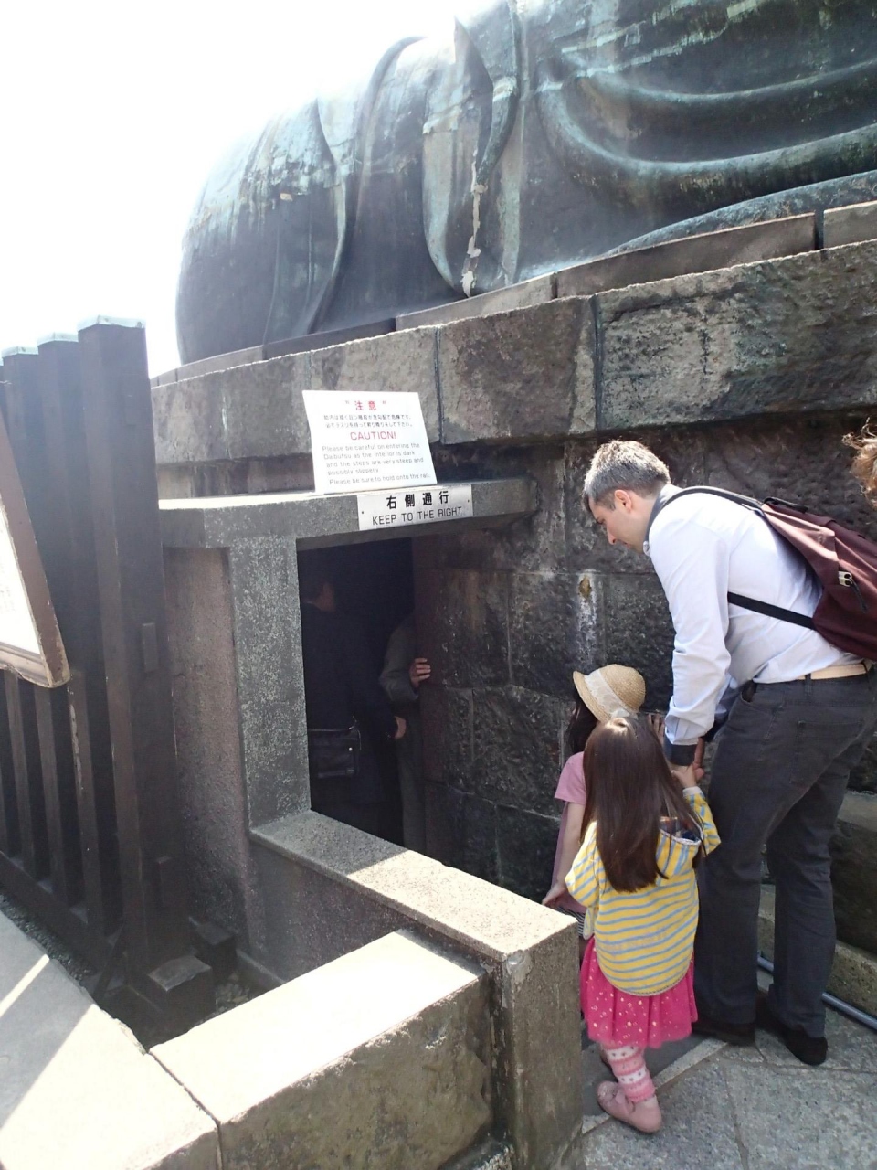 完成当時、大仏様は大仏殿内にありましたが、建物は津波で壊れ、いまは屋外にあります。