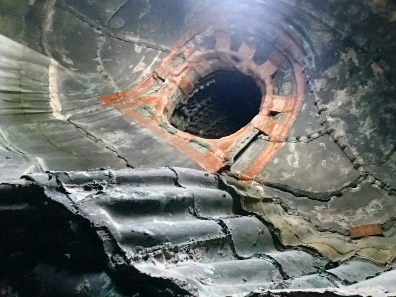 中は狭い階段があり、登ると顔の部分を下から眺められます。